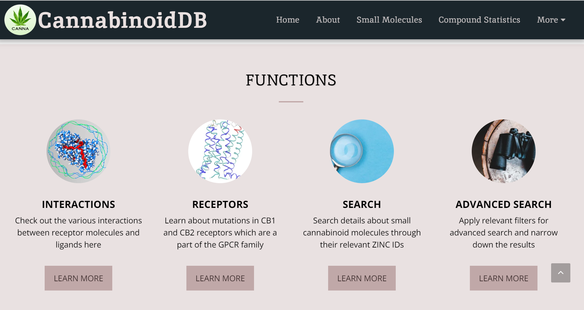 You can find more information on CannabinoidDB by clicking on Read More button of the About Section of the Homepage of the website.