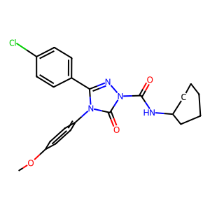 | SMILES | COc1ccc(-n2c(-c3ccc(Cl)cc3)nn(C(=O)NC3CCCCC3)c2=O)cc1 |